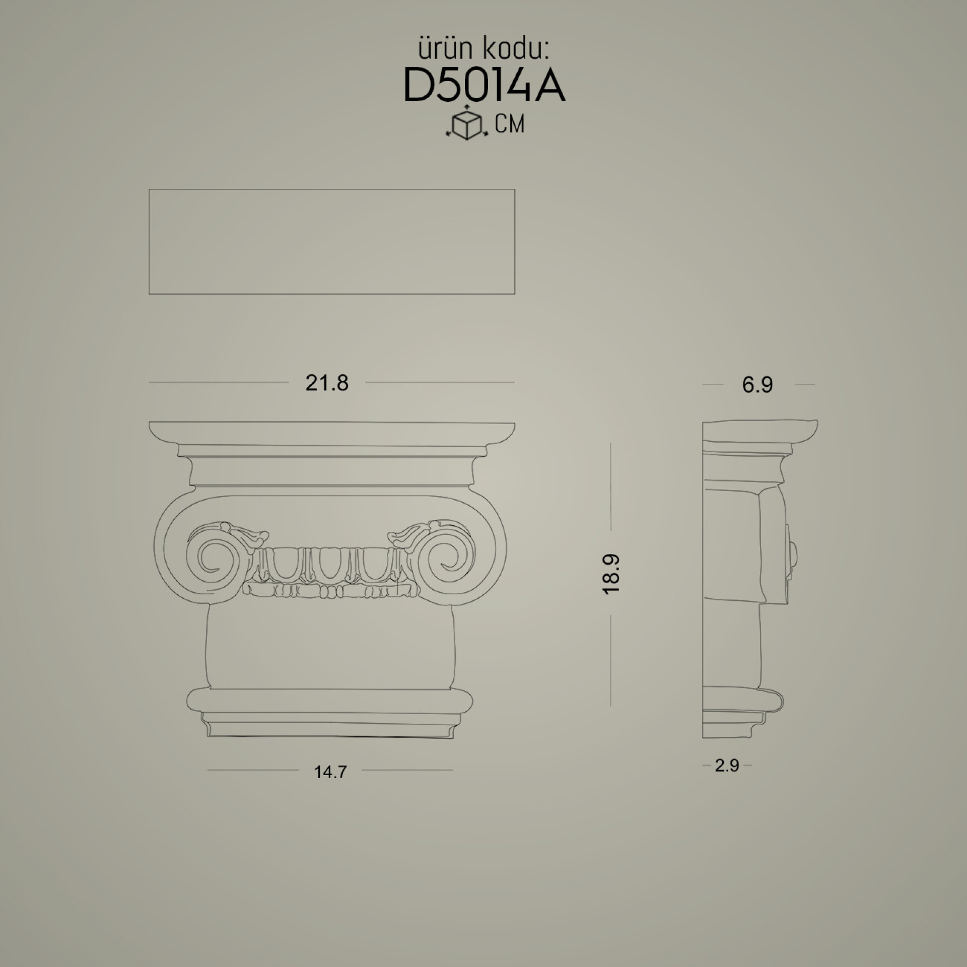 14 cm genişlikte poliüretan sütun başlığı ile kullanabileceğiniz alt kaide modeli