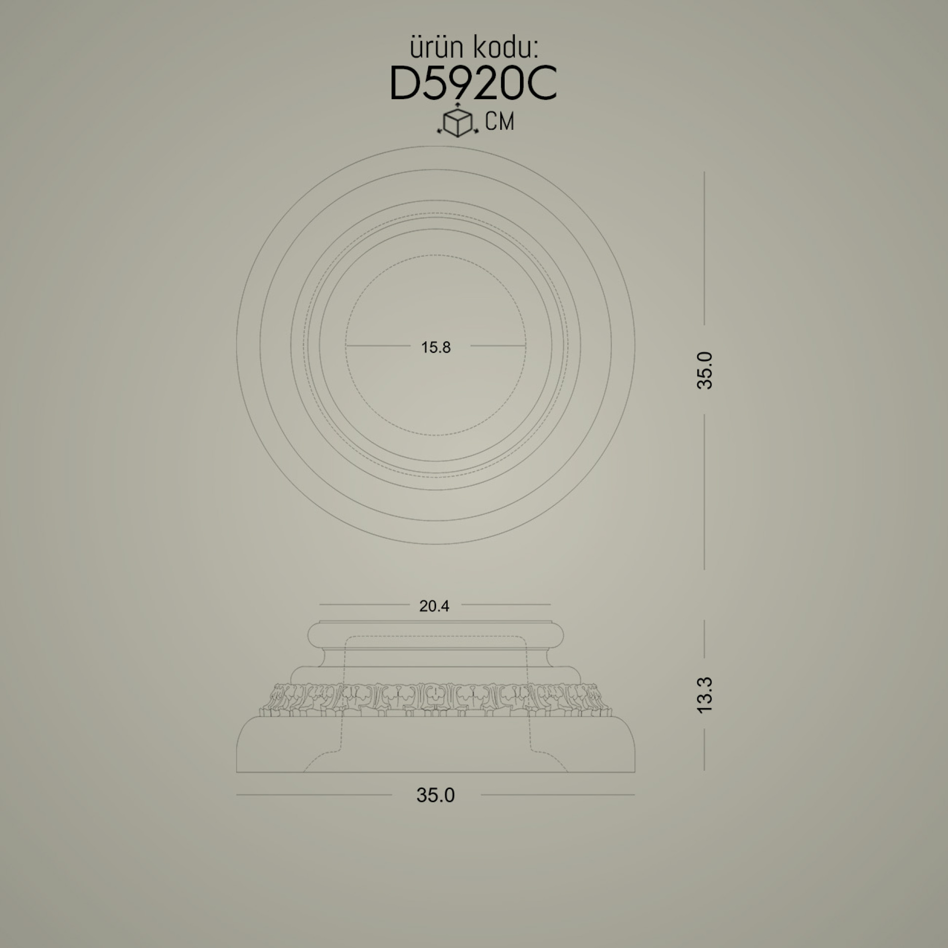 20 cm çapında P5920C ile uyumlu dorik sütun alt kaidesi ve desenli sütun ayağı modelleri.