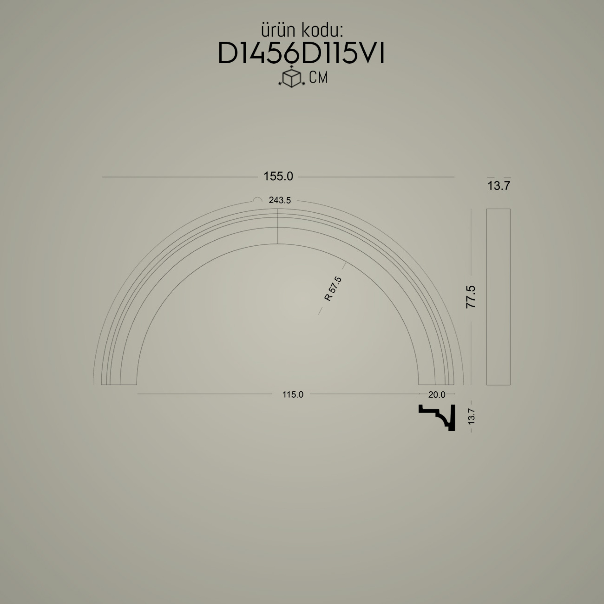 P1456D115VI ile aynı ölçü ama farklı tarzlarda olan kavisli kemer modellerimizdir.