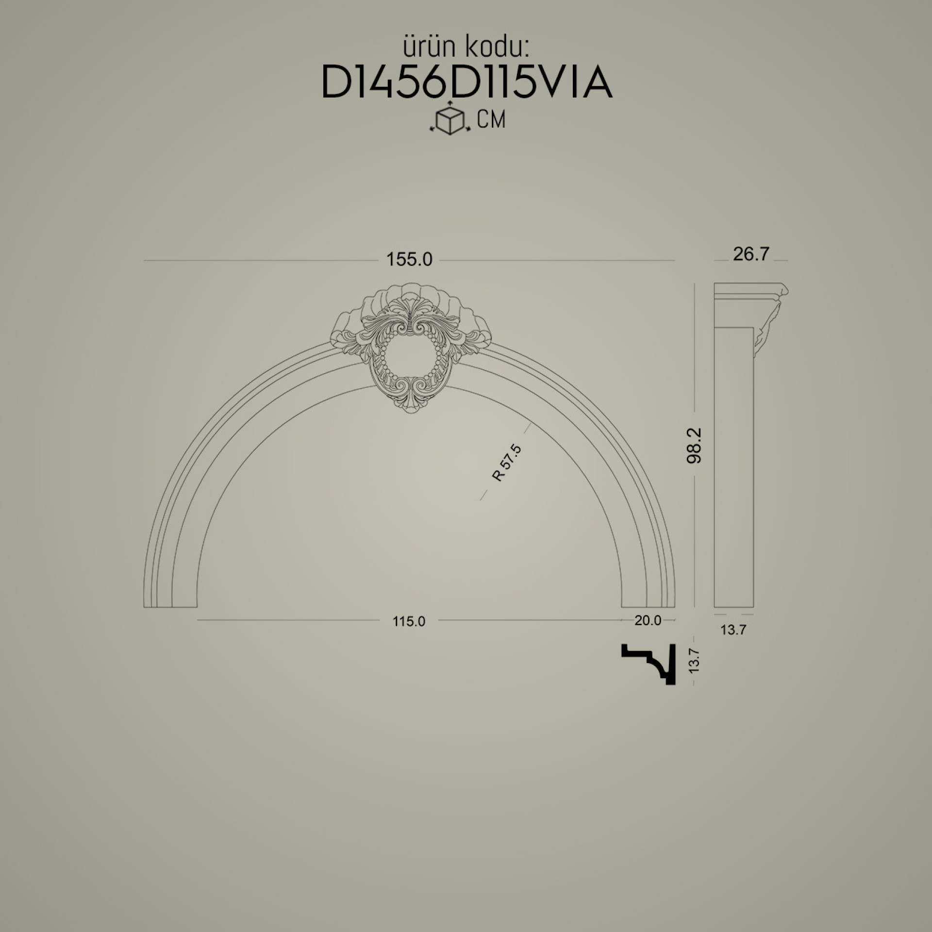 P1456D115VIA ile aynı ölçü ama farklı tarzlarda olan kavisli kemer modellerimizdir.