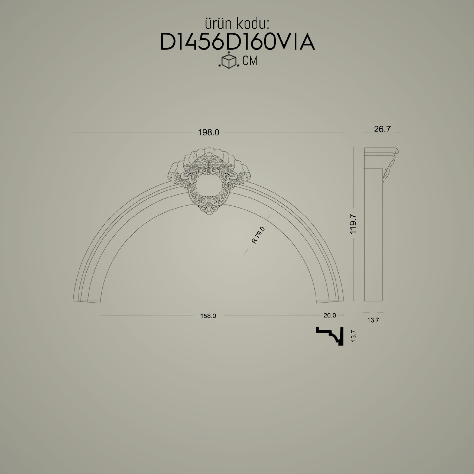 P1456D160VIA ile aynı ölçü ama farklı tarzlarda olan kavisli kemer modellerimizdir.