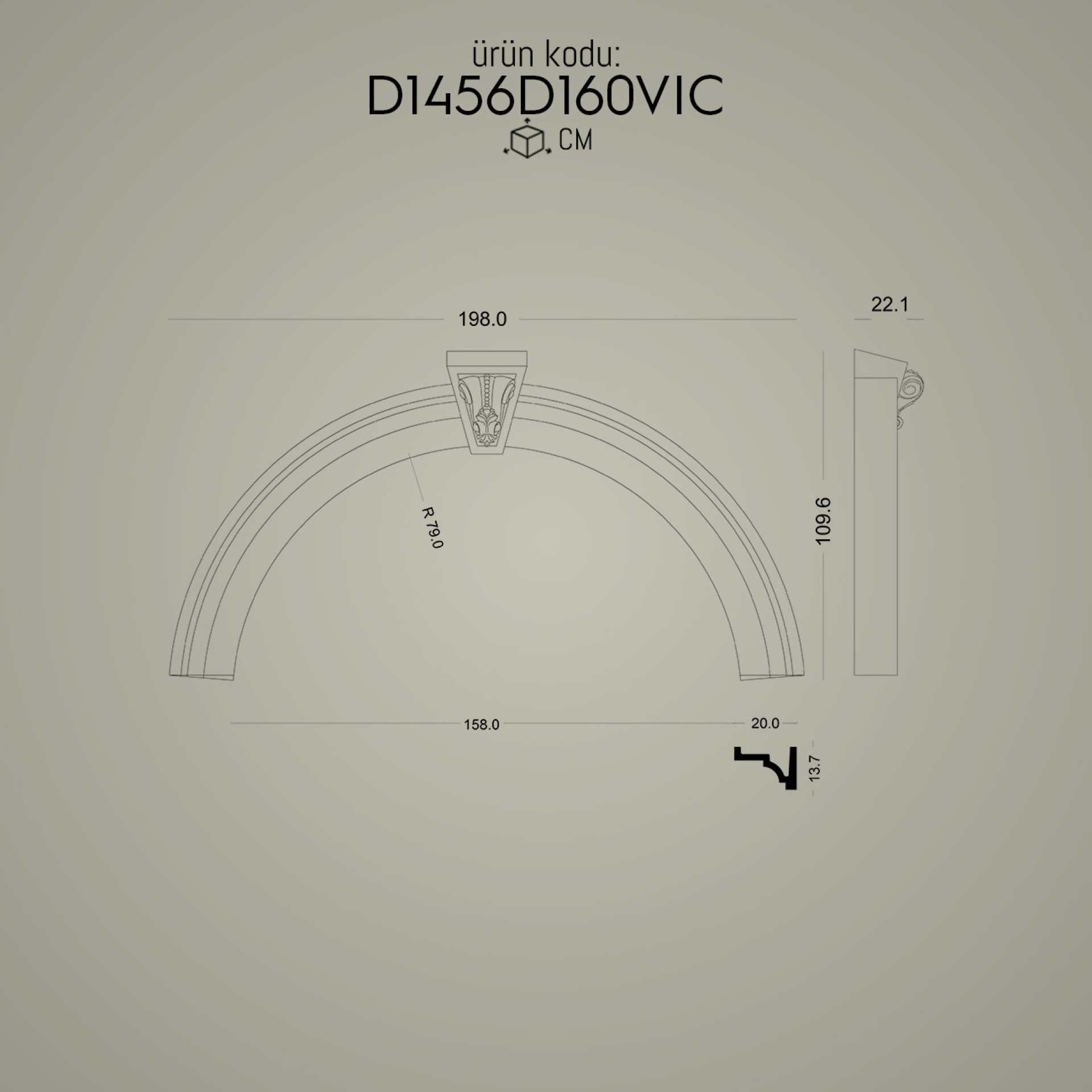 P1456D160VIC ile aynı ölçü ama farklı tarzlarda olan kavisli kemer modellerimizdir.