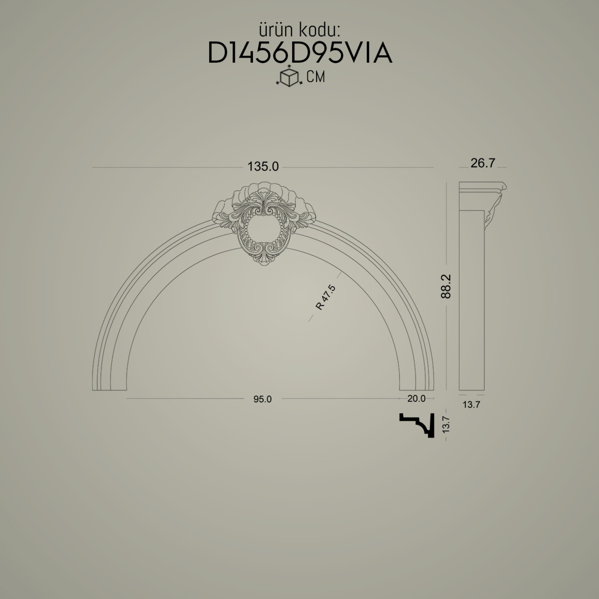 P1456D95VIA ile aynı ölçü ama farklı tarzlarda olan kavisli kemer modellerimizdir.