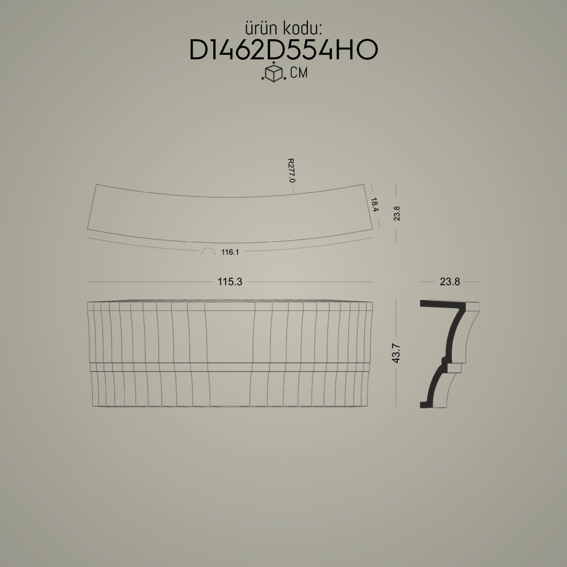 P1462D554HO kapı pencere kemer için radiüslü tac