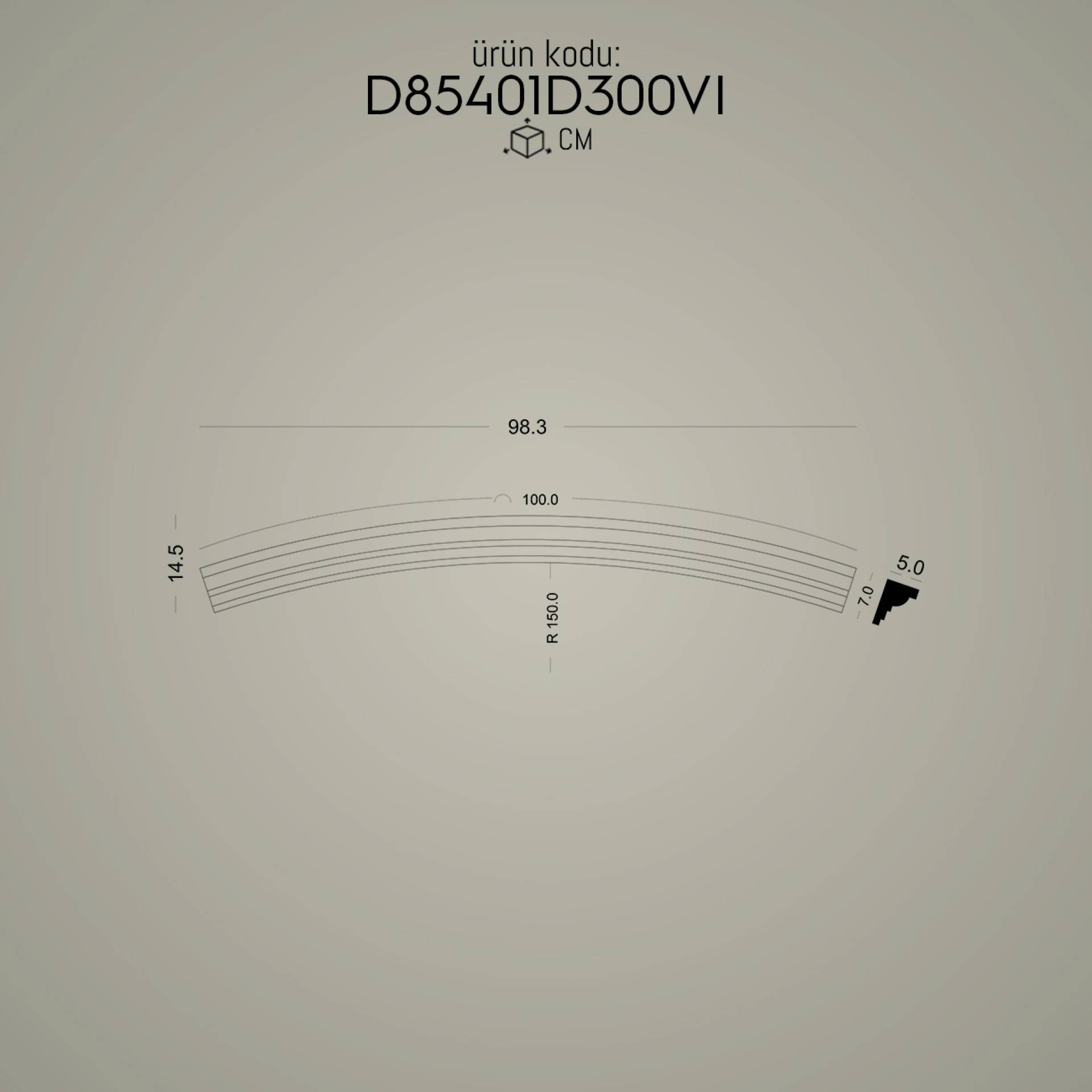 Poliüretan yuvarlak kavis kemer modeli D85401D300VI, hem estetik hem de fonksiyonel bir çözüm arayanlar için ideal bir seçenektir. Uzun ömürlü ve dayanıklı yapısı ile yatırım değeri yüksek bir üründür.