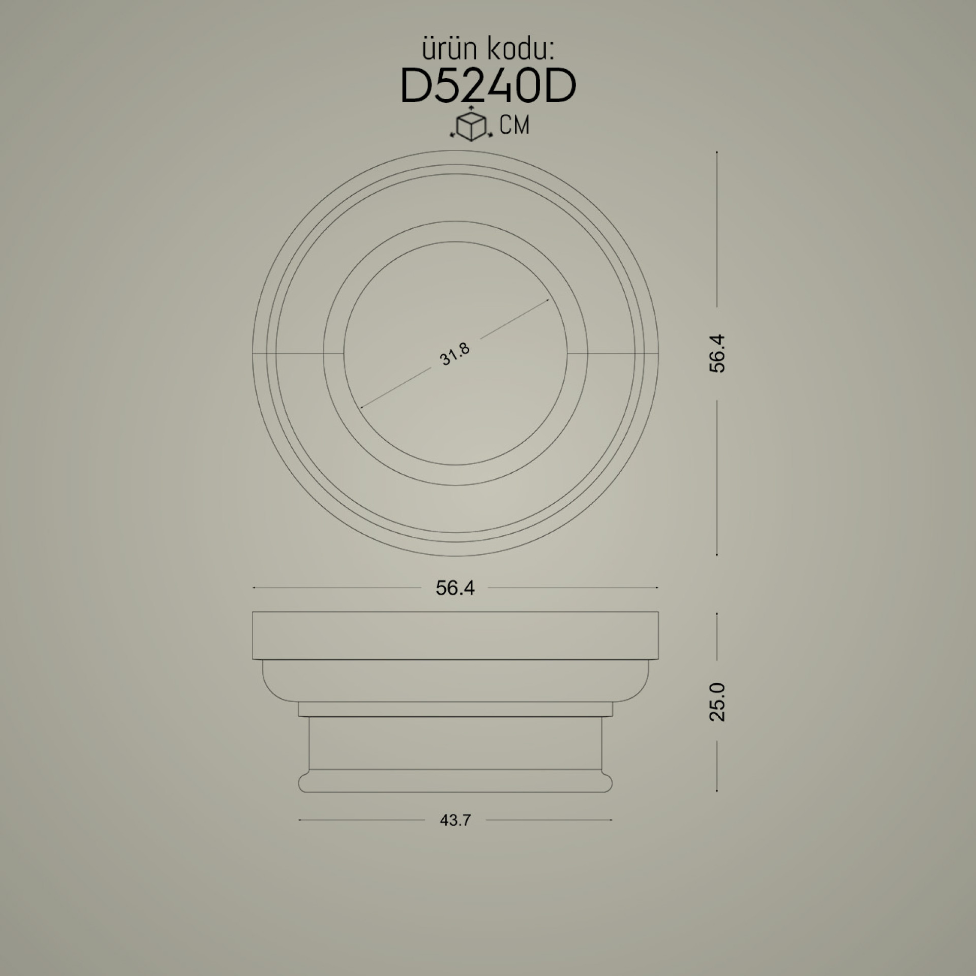 40 cm çap P5240D Dorik sütun başlığı ile uyumlu alt kaide modeli.