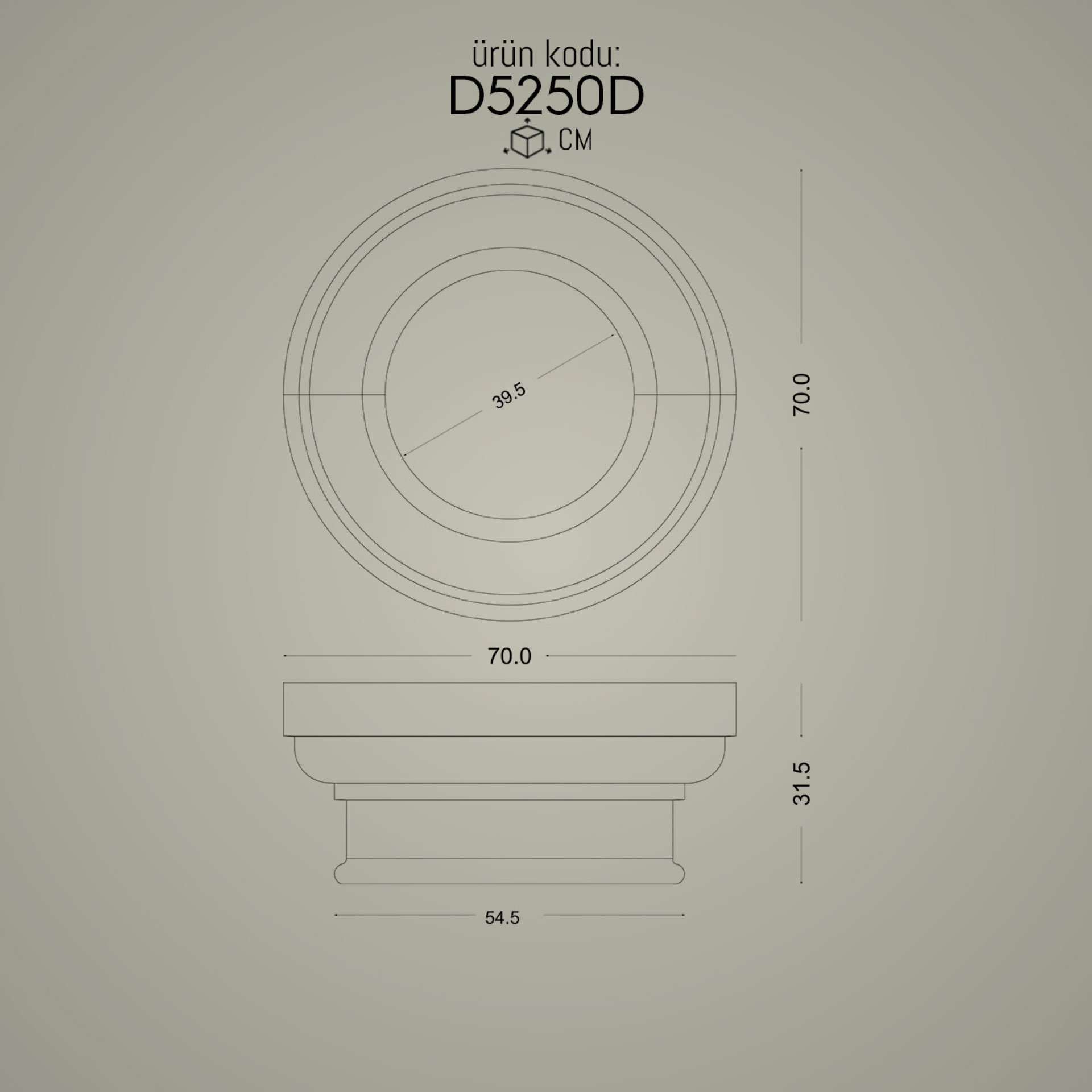 50 cm çap P5250D Dorik sütun başlığı ile uyumlu alt kaide modeli.