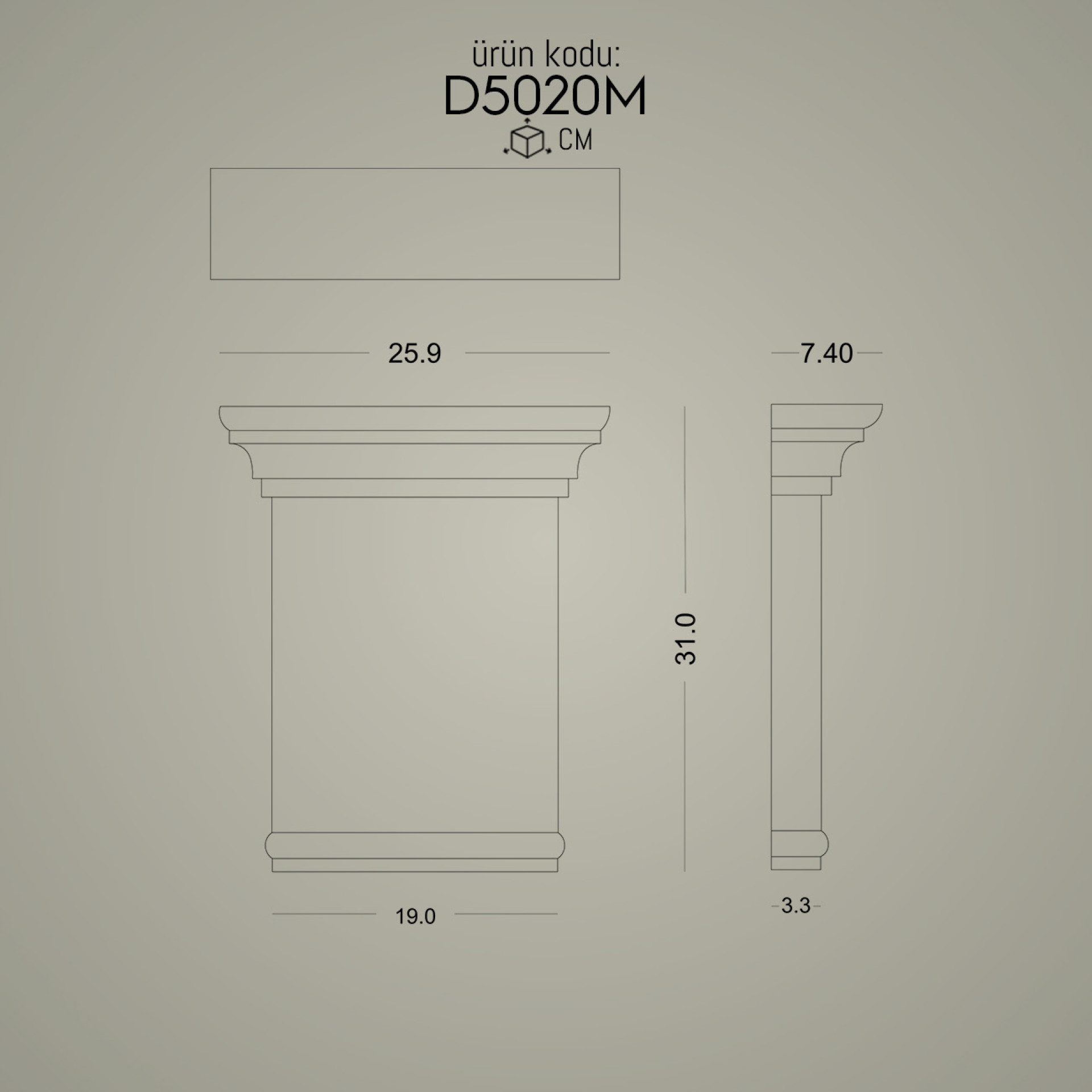 20 cm genişlikte poliüretan sütun başlığı ile kullanabileceğiniz alt kaide modeli