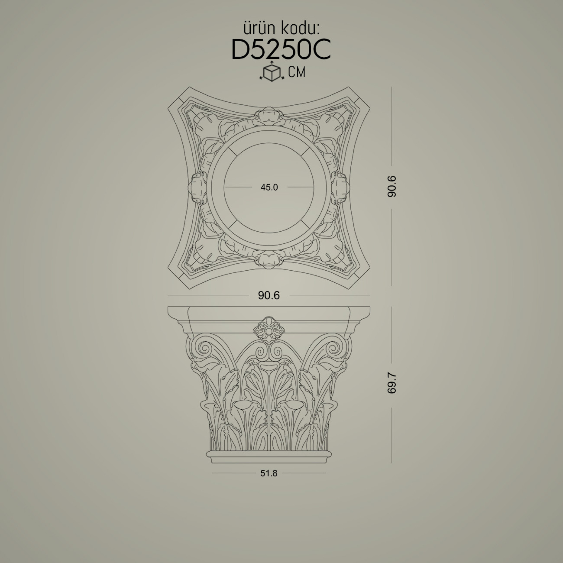 50 cm çap korint sütun başlık modeli ile uyumlu sütun alt kaide modeli